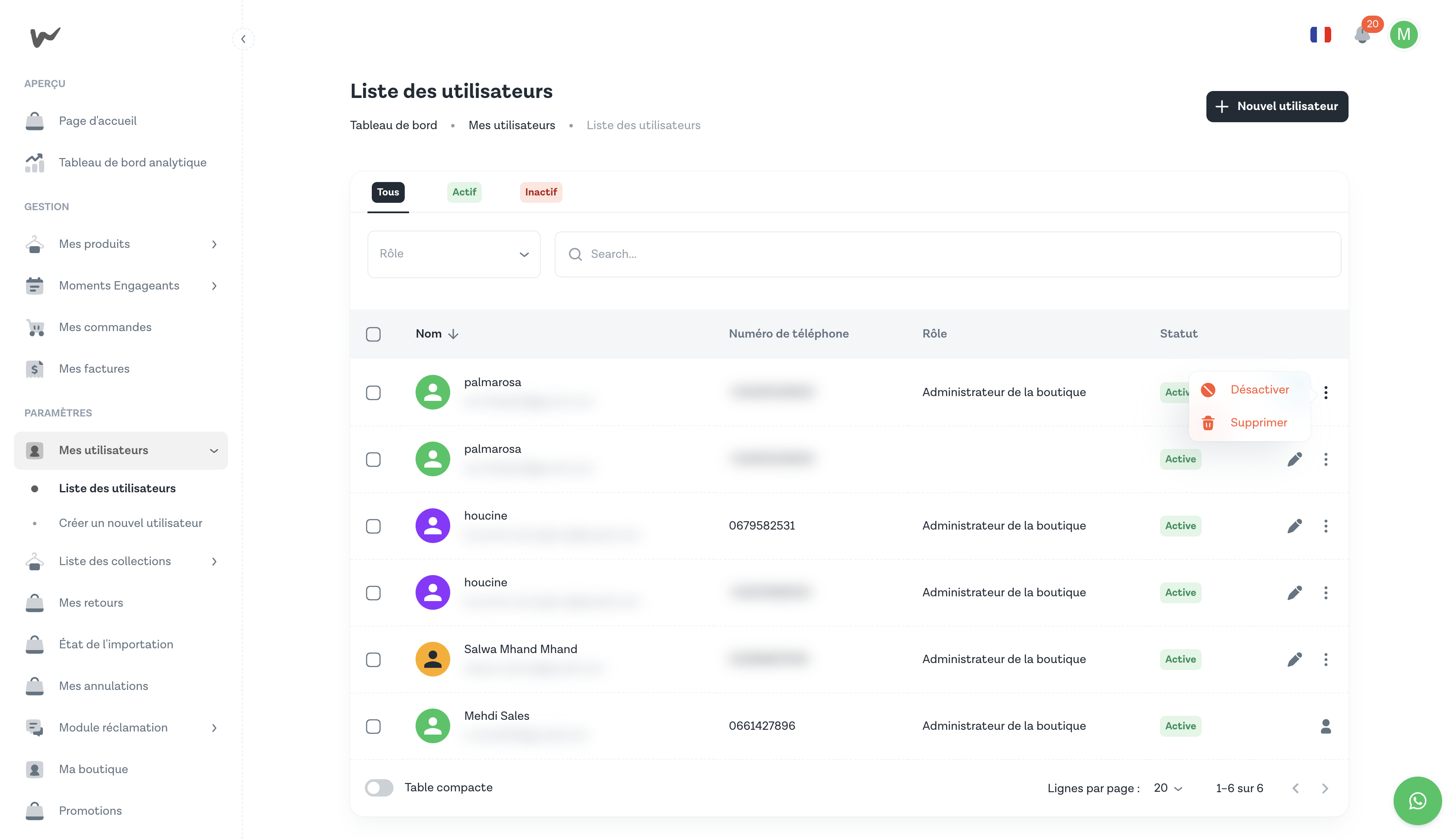 - Vous ne voyez pas le menu "Mes utilisateurs" : vérifiez que votre compte a bien le rôle Administrateur de la boutique.